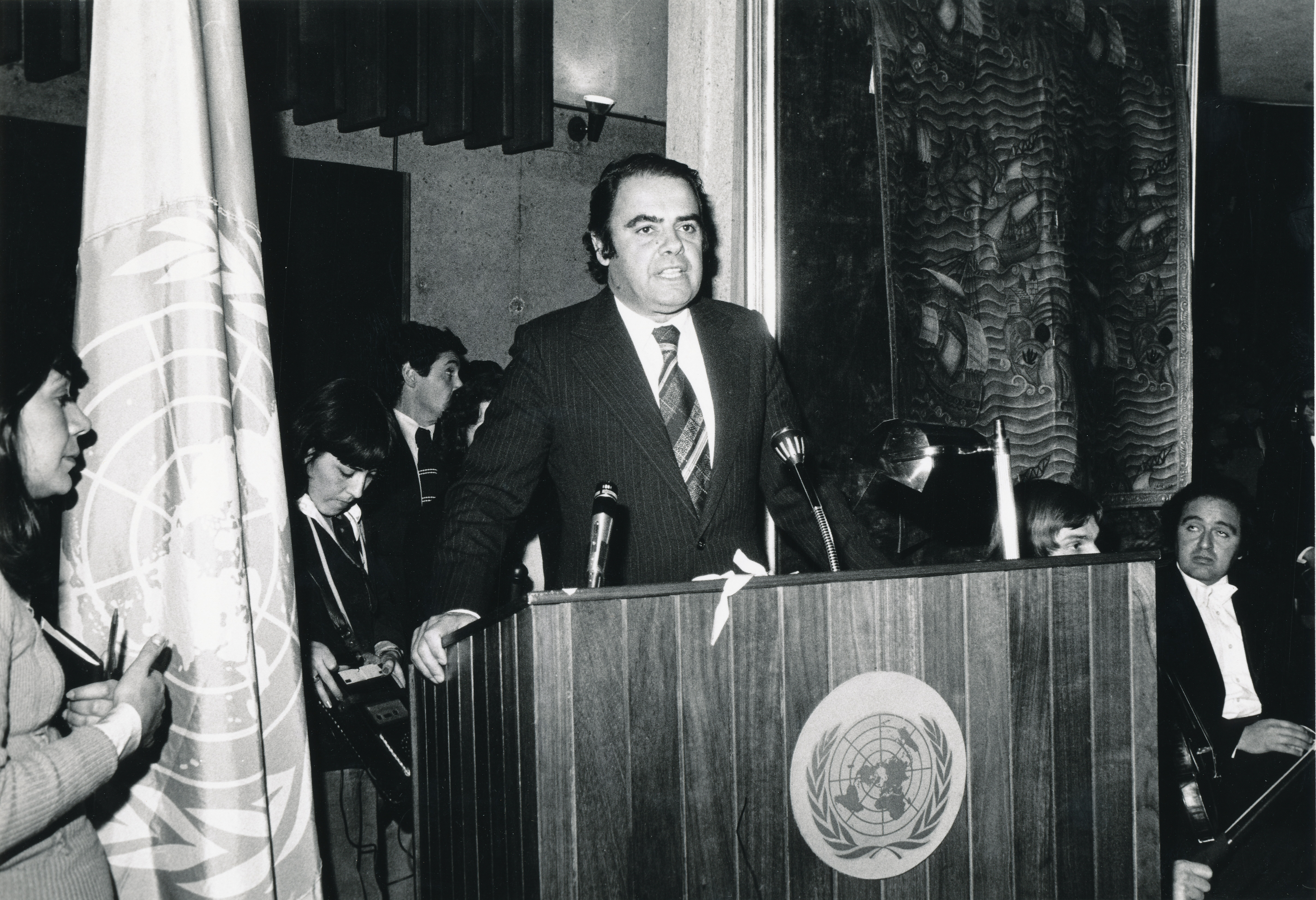 | dc.description.abstract | Enrique V. Iglesias (Secretario Ejecutivo de la CEPAL), en la reunión conmemorativa del 7 de junio. La CEPAL celebró su trigésimo aniversario en una ceremonia celebrada en la sede de la CEPAL en Santiago de Chile. La Orquesta de la Universidad de Chile tocó en el concierto conmemorativo bajo la dirección del maestro Víctor Tevah. CEPAL, Santiago, 7 junio 1978 |