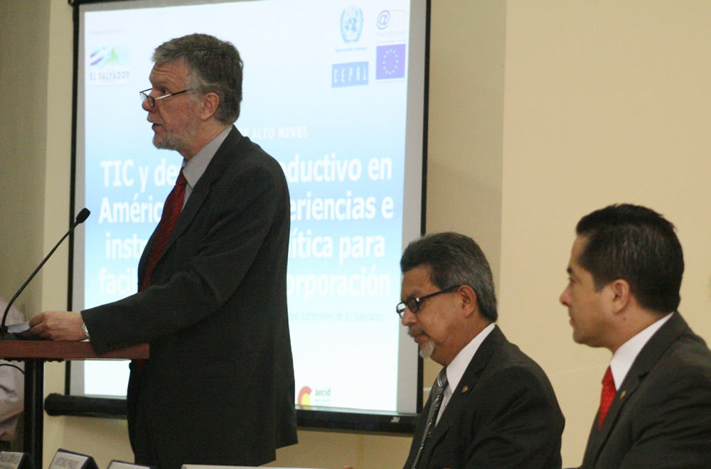 | dc.description.abstract | El seminario internacional TIC y desarrollo productivo en América Latina: experiencias e instrumentos de política para facilitar su uso e incorporación, se realizó los días 17 y 18 de julio en San Salvador, El Salvador. Fue organizado por el Ministerio de Economía de El Salvador y la CEPAL, mediante su proyecto CEPAL @LIS2 -cofinanciado por la Unión Europea-, con la colaboración de la Dirección de Innovación Tecnológica e Informática (ITIGES) de la Presidencia de El Salvador, del Proyecto Mesoamérica y de la Secretaría General Iberoamericana (SEGIB). Los expertos de la CEPAL recomendaron formular políticas públicas agresivas para la incorporación de las TIC en los sistemas productivos, particularmente en las MIPYMES y en los sectores que necesitan mejorar la productividad. Dichas políticas deben ser parte de una política industrial activa e integral para el cambio estructural y la construcción de la igualdad. |